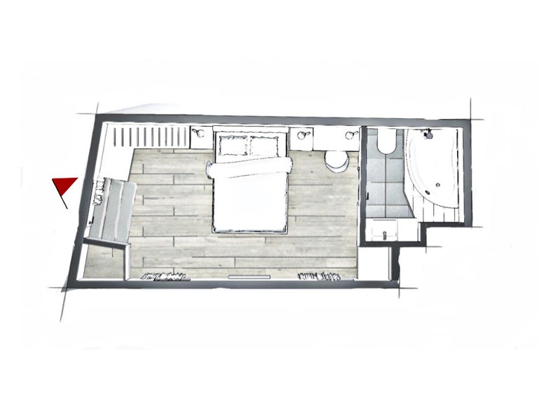 Standard double room is situated on the ground floor with an entrance from the street. It comprises a flat-screen SAT TV, a minibar and a fridge. The bathroom includes a bath tub and free toiletries.